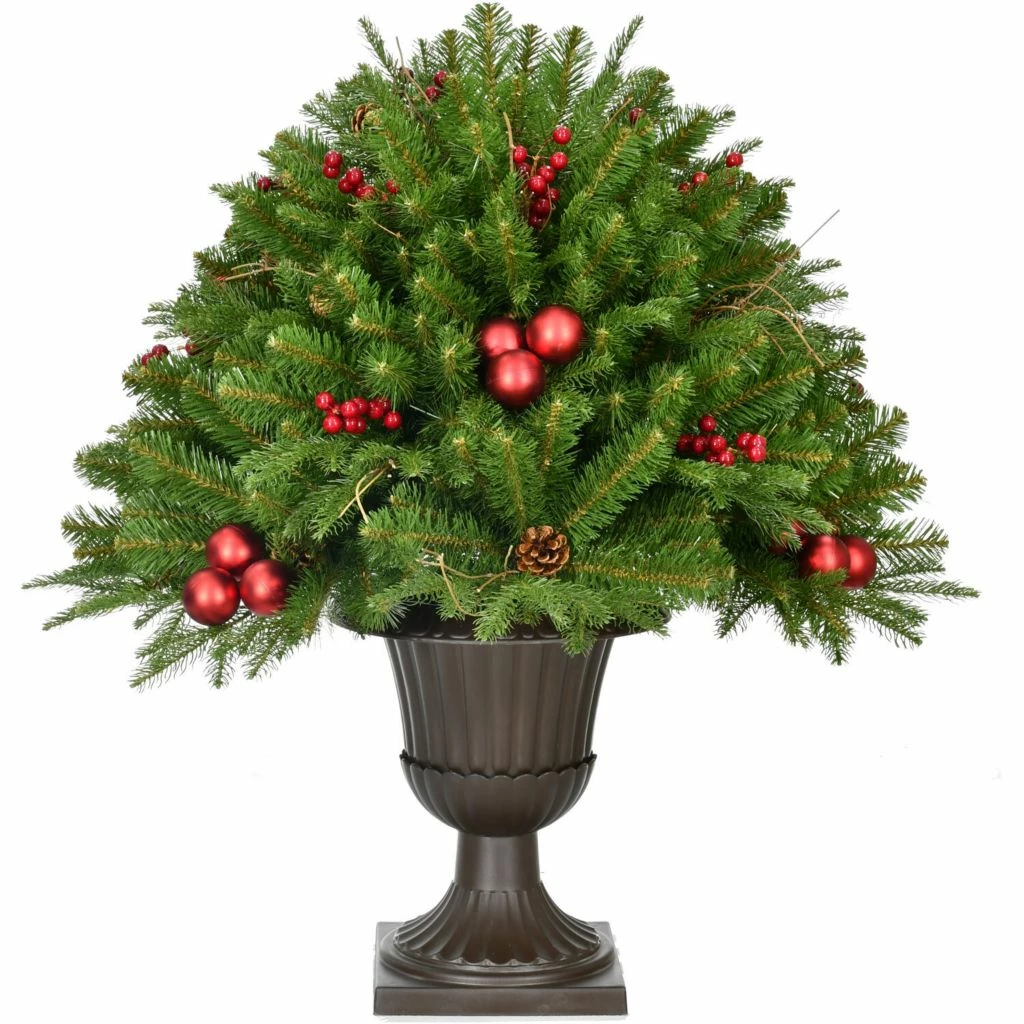 Fraser Hill Farm 2.5 ft. Joyful Porch Tree in Pedestal Urn with Pinecones, Berries, and Ornaments, FFJFPT030-0GR