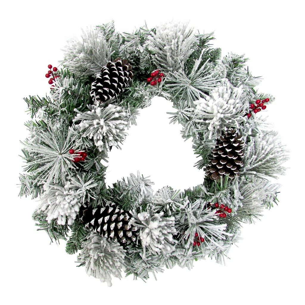 - Accented with pinecones and artificial red berries