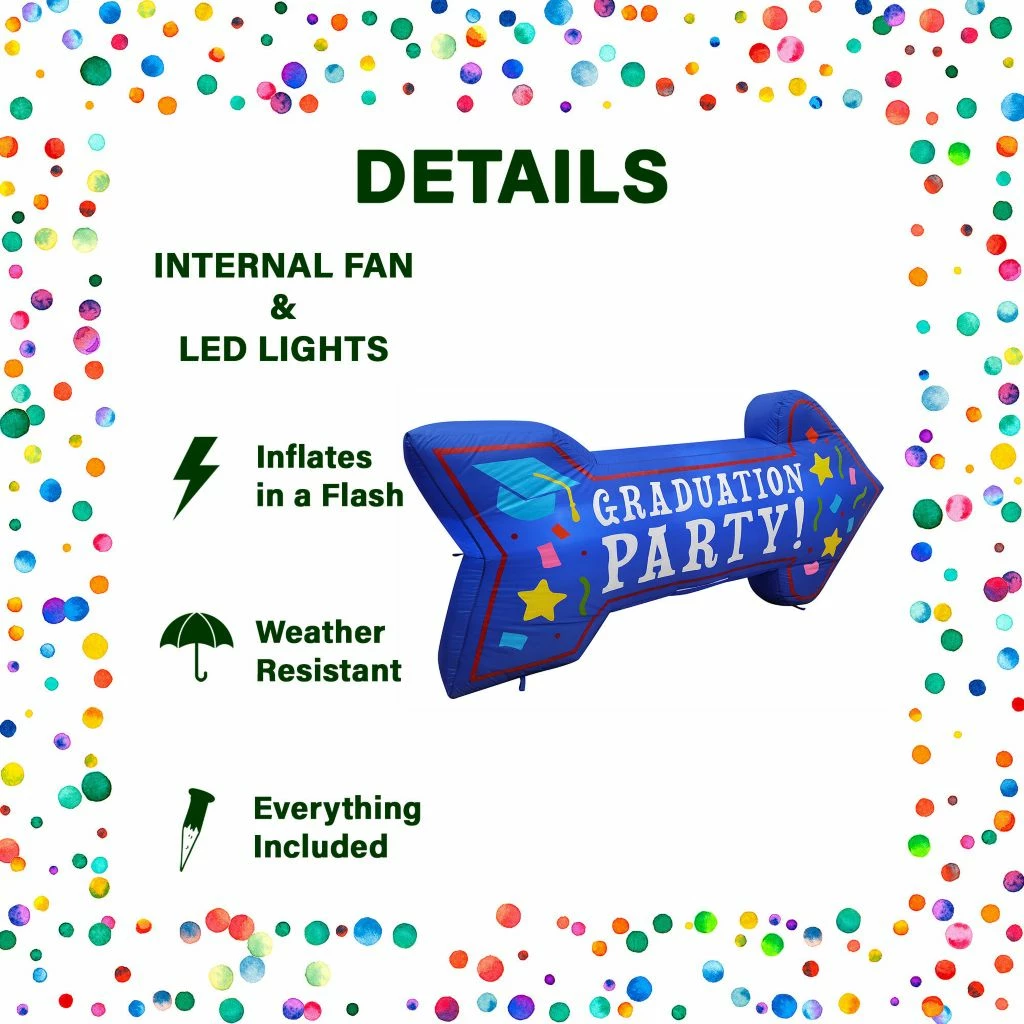 Fraser Hill Farm 8 ft. Wide Graduation Party Arrow Outdoor Inflatable, Outdoor Blow Up Inflatable with Lights, FHINGDPRTY081-L
