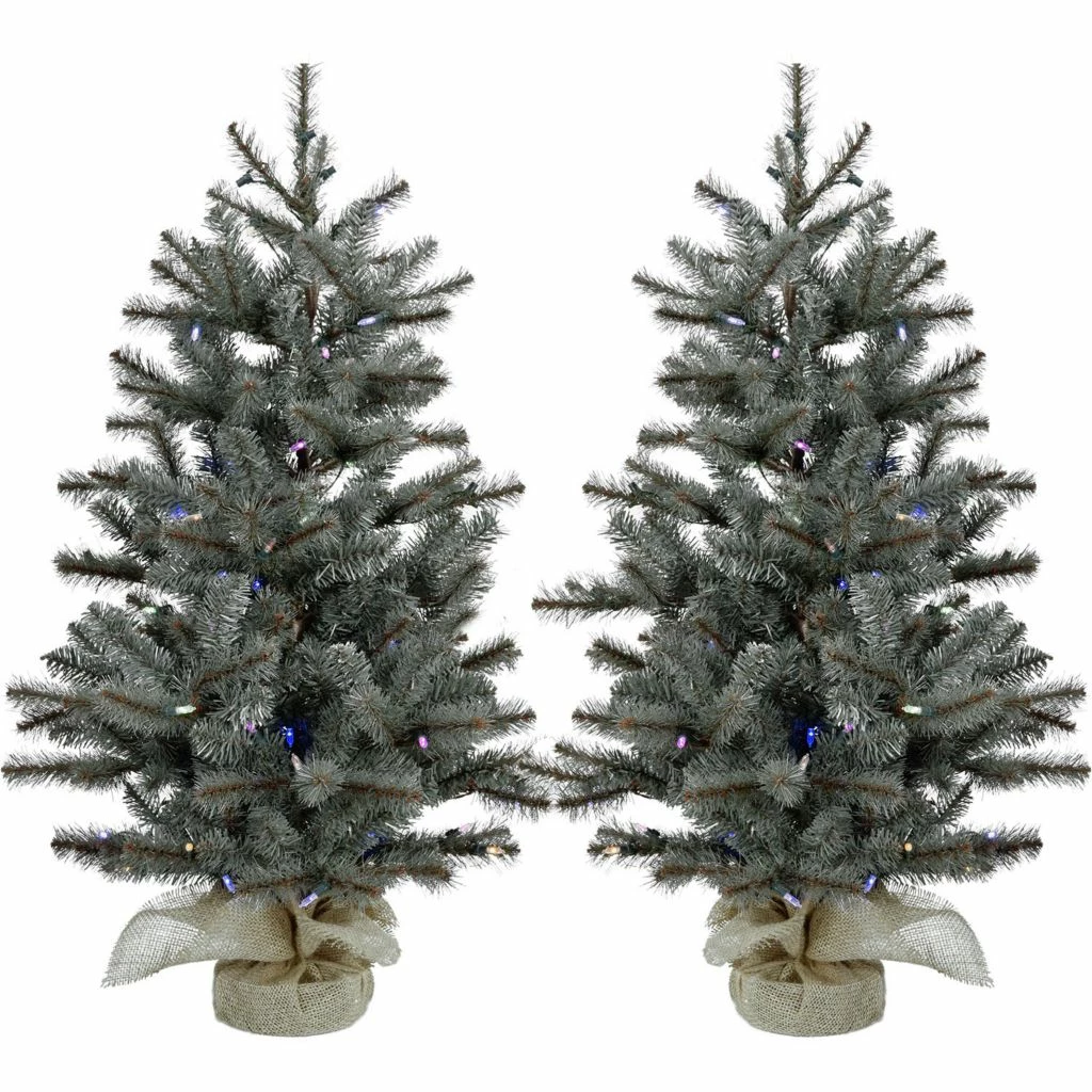 - Each decorative pine tree comes with a burlap sack base with extra weight for stability